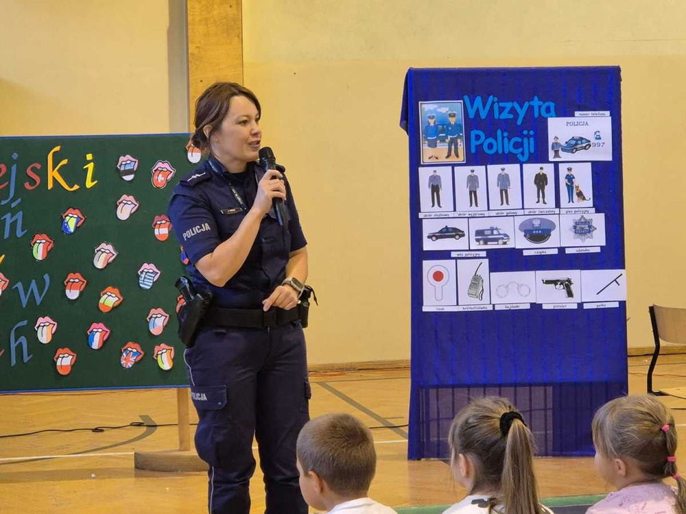 Policjantka z Aleksandrowa odwiedziła przedszkole i Szkołę Podstawową w Bądkowie, aby przypomnieć najmłodszym zasady bezpiecznego poruszania się po drogach oraz bezpiecznych zachowań podczas zabaw. Podczas spotkania omówiono także potrzebę jazdy samochodem w specjalnych fotelikach i siedziskach oraz zagrożenia związane z kontaktami z osobami obcymi.