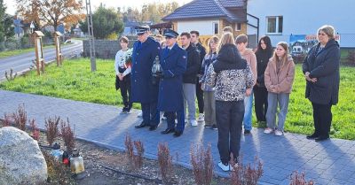 W związku z obchodami Wszystkich Świętych komendant powiatowy i jego zastępca wraz z uczniami złożyli kwiaty i zapalili znicze przy tablicy...